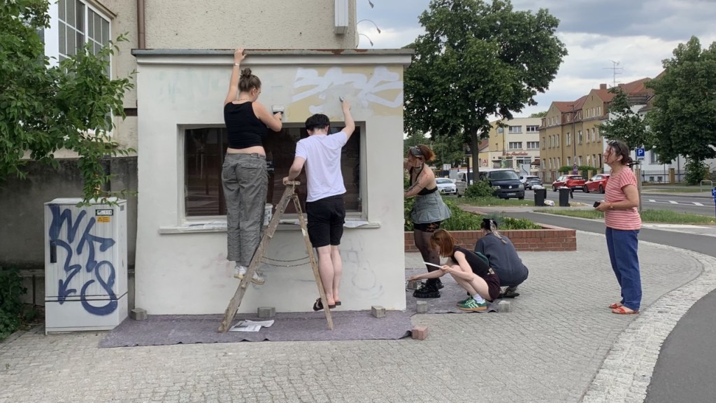 Summer semester 2024: The Young City Makers conquer a new space! The small extension on the roundabout at Albrechtplatz 125 has been eyed for years: by creative people who would like to use this little house and by residents who wonder what this sticky, tagged thing is actually good for. It turns out that the little house in question belongs to a law firm that actually wants to tear it down. But when they hear about the Young City Makers’ ideas to transform and redesign this place, they drop their plans. And the cherry on top: there is no rent for the site.