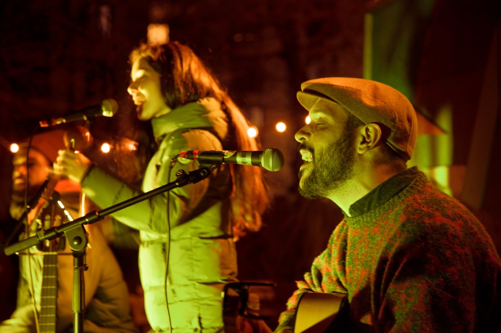 Ein veganes Drei-Gänge-Menü, inspiriert von der regelmäßig stattfindenden “Küche für Alle”, sorgte für leibliches Wohl und Gesprächsstoff. Das Konzert der lateinamerikanischen Band Cuatro Piraguas aus Leipzig brachte den Garten zum Klingen – und trotz kühler Märzluft wurde später getanzt, gesocialized und sogar Salsa aufgelegt.